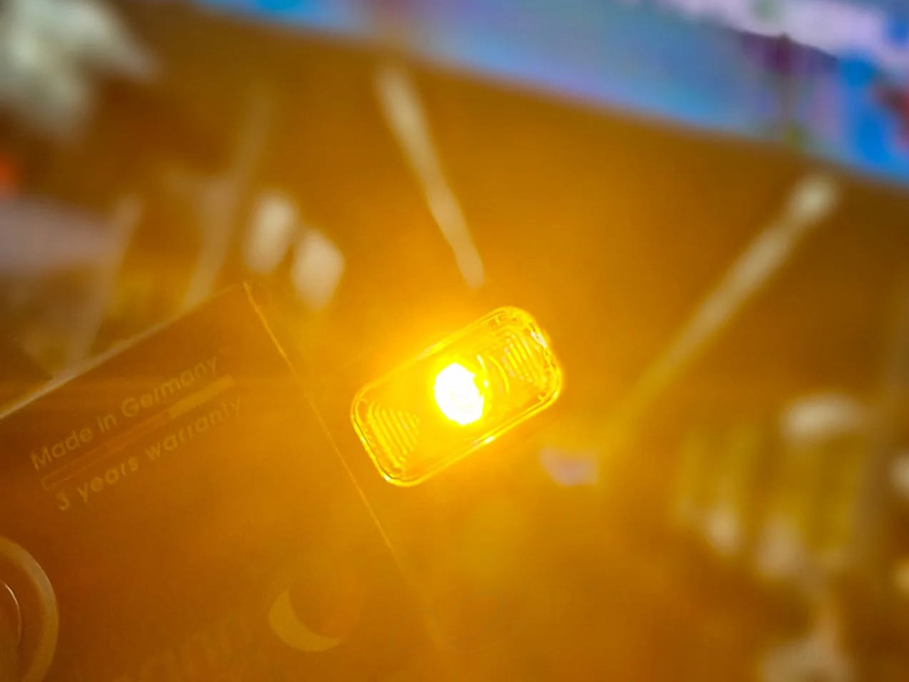 ・「方向指示器、非常点滅表示灯又は側方灯と構造上一体となっている車幅灯にあっては、橙色であってもよい」Kellermannの車幅灯はこの要件に該当し、保安基準適合品となります。